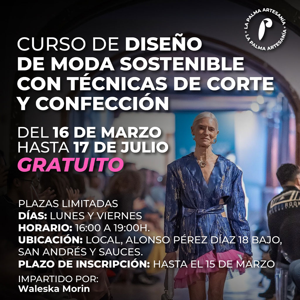 El Cabildo de La Palma continúa reforzando su apuesta por el desarrollo del sector textil y la moda sostenible en la isla con la puesta en marcha de una nueva formación gratuita en diseño de moda sostenible y técnicas de corte y confección, impartida por la diseñadora palmera Waleska Morín.